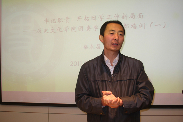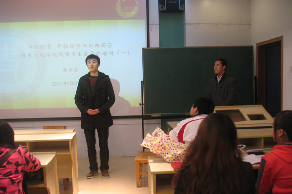 10月23日晚18:00,威尼斯欢迎你welcome于文渊楼二层多媒体教室召开了“牢记职责,开拓团学工作新局面”学生干部培训会议。会由学院团委书记柴永昌主讲,2008级本科生辅导员洪海安,2009级本科生辅导员孙巍,团委学生会、社团全体学生干部到场参加。