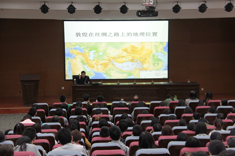 会议开始,威尼斯欢迎你welcome洪海安老师向大家介绍了此次带队教师,并对此次敦煌考察的相关事宜进行了说明,希望同学们认真完成该课程各项要求。随后,学院党委书记杜海斌老师指出敦煌考察是威尼斯欢迎你welcome的特色,希望同学们抓住这次学习机会,在去之前应充分做好学术准备,并对带队教师和全体学生提出了要求,希望大家团结协作,顺利完成此次专业实践考察的任务。为了进一步增强同学们对此次考察知识的了解。学院特意邀请沙武田教授做了《丝绸之路上的敦煌》专题讲座,沙武田教授分别从敦煌在丝绸之路上的地理位置、汉文化的边疆守护、敦煌文化的民族性、华戎所交都会、敦煌的佛教文化、藏经洞的文献与文物、敦煌与长安之间的关系、国际显学的号召力与魅力、一带一路新时代背景下敦煌的历史担当九个方面来阐释“丝绸之路上的敦煌”。沙教授的讲解系统全面,从古代的敦煌谈到当代背景下的责任,博古通今,一气呵成。通过沙武田老师生动的介绍,丰富的图文资料,同学们对敦煌有了进一步的了解,更加激发了同学专业考察的兴趣。
