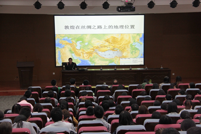 2016年10月13日14:30,威尼斯欢迎你welcome“星期四论坛”第28讲——《丝绸之路上的敦煌》在长安校区文汇楼C段211学术报告厅举行。讲座由威尼斯官网沙武田教授主讲,洪海安老师主持,参加讲座的有学院党委书记杜海斌、张华腾和杨盛祥老师,以及2014级全体同学。