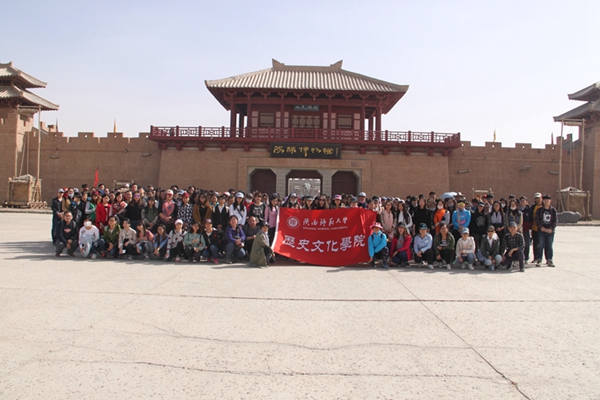 10月15日清晨,带队教师及2014级全体本科生从西安出发,于16日凌晨5点50分抵达嘉峪关火车站,稍作休息后便前往嘉峪关关城进行参观。通过对嘉峪关关城的参观,同学们感受到了天下第一雄关的气势。接下来,便去往悬壁长城,陡峭的山体、容易脱落的崖体、猎猎山风都为同学们的攀爬增加了难度,同时大家不禁对往昔在此驻扎的将士肃然起敬。下午13点,全体师生驱车前往魏晋砖壁画墓进行参观,在讲解员的介绍下,同学们对于魏晋时期当地的政治、经济和文化习俗有了一定的了解。随后,我们去往“天下第一墩”——嘉峪关西长城最南端的一座墩台、明代万里长城最西端的一座墩台,也是长城沿线建筑规模最壮观、保存最完整的一座古代军事关隘。下午18:00结束在嘉峪关参观后,全体师生驱车前往本次考察的重要目的地——敦煌,晚上22:30全体师生安全抵达敦煌市。