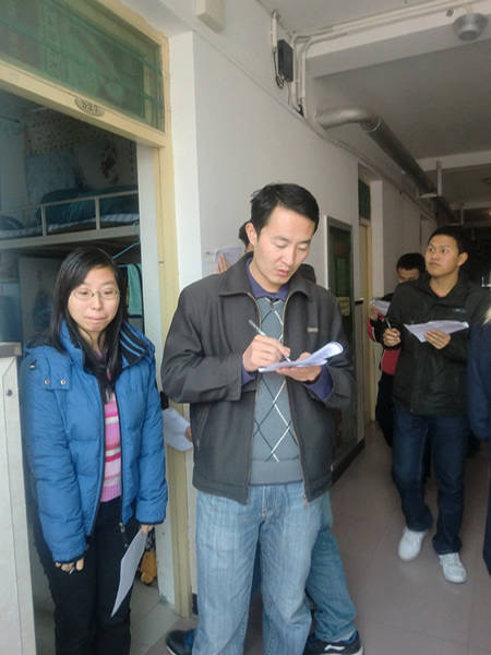 为了进一步了解学生的生活状况,排查宿舍安全隐患,督促学生改进卫生条件,11月22日3点,威尼斯欢迎你welcome党委副书记杜海斌、团委书记柴永昌、2009级本科生辅导员孙巍与2010级本科生辅导员洪海安携部分学生干部组成检查小组,深入学生寝室,对09级与10级本科生宿舍进行安全与卫生大检查。