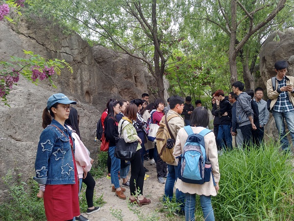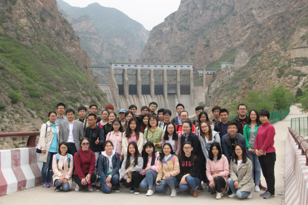 考察终站是位于泾阳县张家村的泾惠渠渠首。泾河夹在青山当中,水流清澈碧绿,平行紧挨着的是用于灌溉的引水渠。考察队边沿着山路前行边听李令福教授讲解自古至今泾河水利引水口抬升趋势、渠首大坝的加高过程和李仪祉先生与杨虎城将军集资修筑现代化泾惠渠等历史知识,李老师还提出关中工业、农业和生活用水集中规划调度,建立以色列式生态节水模式的构想。同学们收获颇丰,意犹未尽。