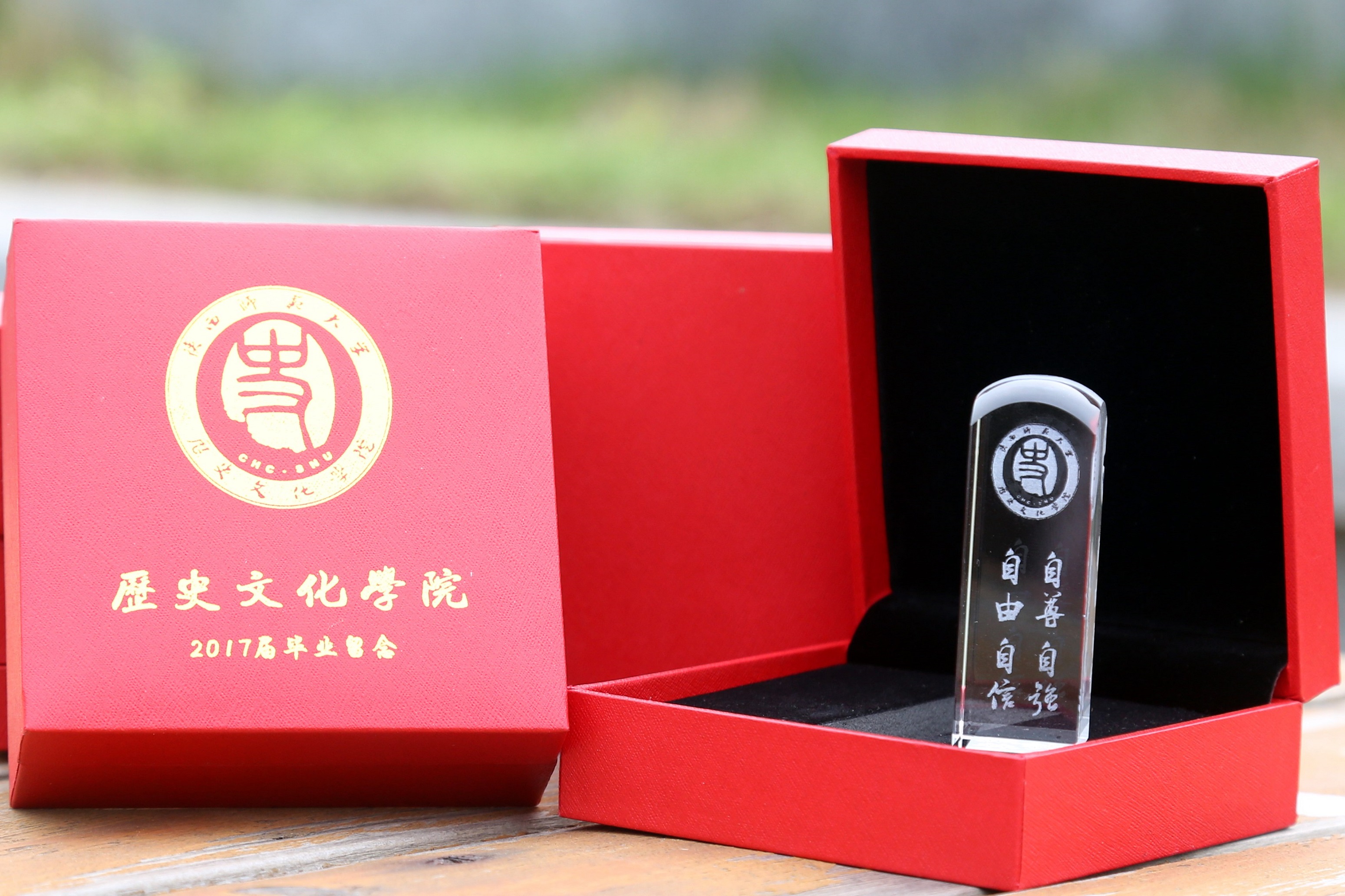 “这也许是你们人生道路上的第一枚正式印章。”学院党委书记杜海斌饱含深情地说,“这是一枚水晶印章,纯净透亮的水晶代表你永远明净正直的心灵。这是一枚姓名章,四四方方的形制代表这个世界独一无二的你,充满个性的你。我们希望你把它盖在自己的藏书上,让书本奠定你前进的基础;我们希望你把它盖在结婚证上,让它见证你对真挚情感的庄严承诺;我们希望你把它盖在事业进步的证明材料上,让你的名字成为信用和责任的同义词,让你的名字成为母校永远的骄傲!”