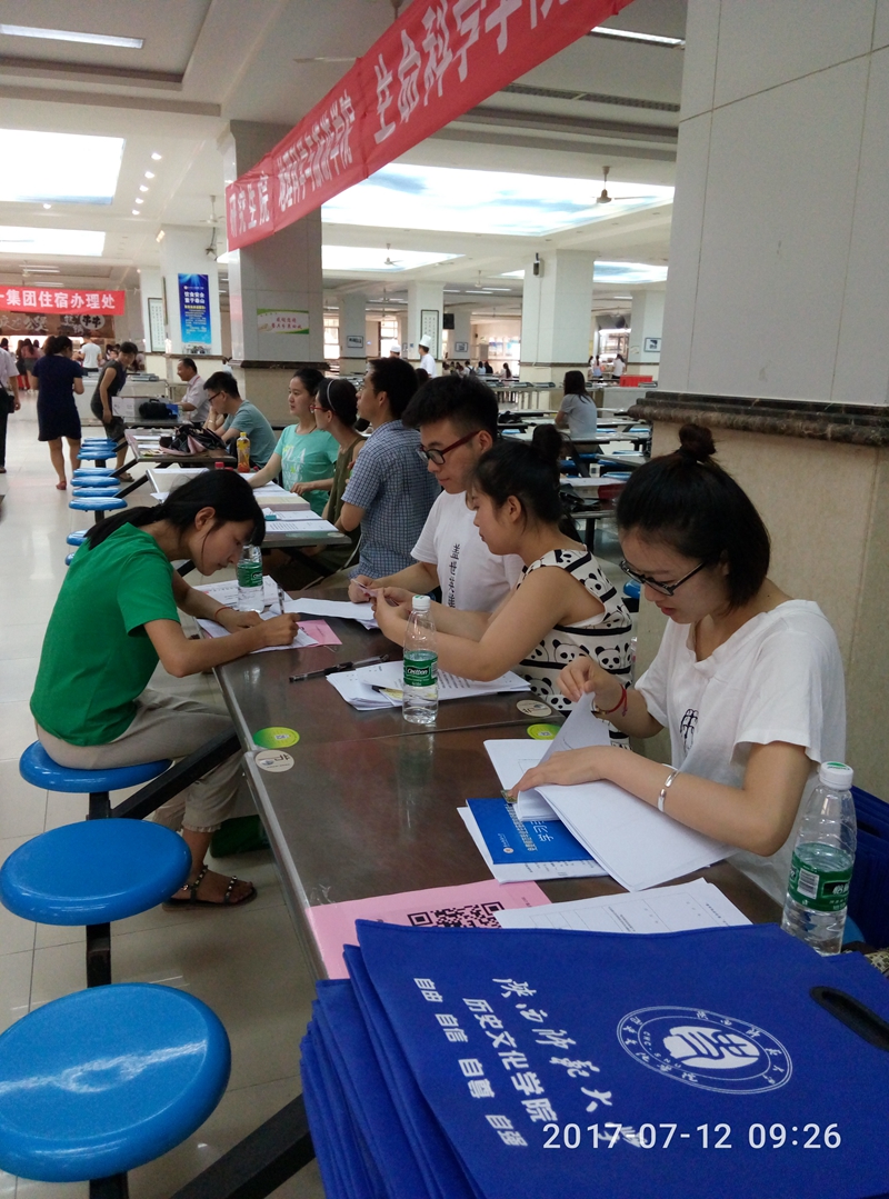 上午8:30以后,威尼斯官网2017级免费师范生教育硕士陆续前来报到,在核对新生的录取通知书和身份证等信息后,志愿服务方超、李卓、顾梦宇三位同学协助新生填写了信息汇总表、告知书等,并耐心向其讲解报到流程。此外,学院还给所有报到教育硕士准备了专用手提包和水,给返校的同学在这炎热的夏天送去了一份具有爱心的礼包,受到学生们纷纷称赞。下午16:30迎接工作结束时,共有71名同学前来报到。随后,研究生辅导员通过电话和QQ及时联系未按时报到的同学,对其未能报到的原因进行了解与登记。