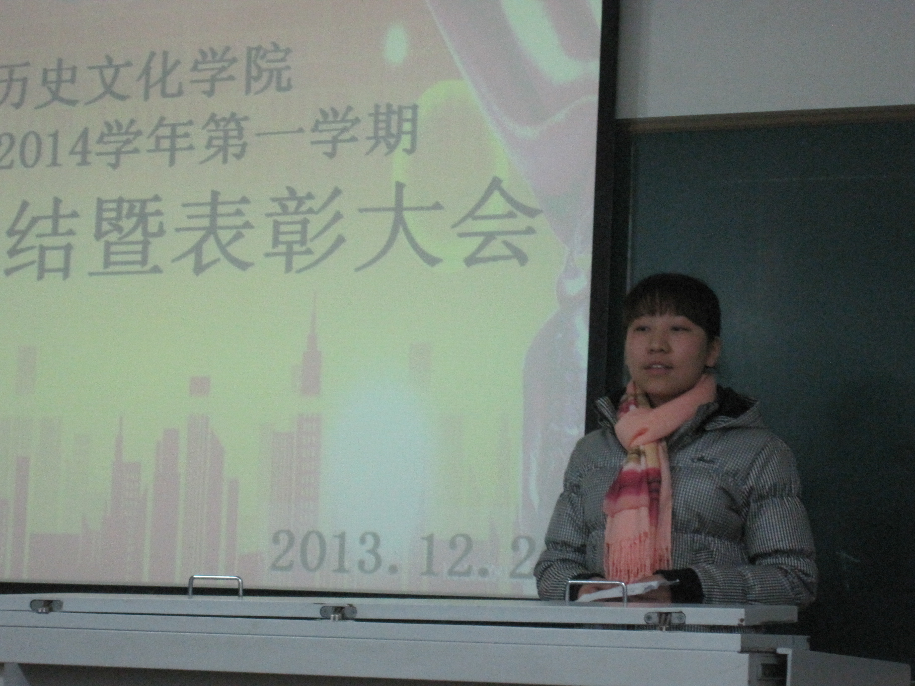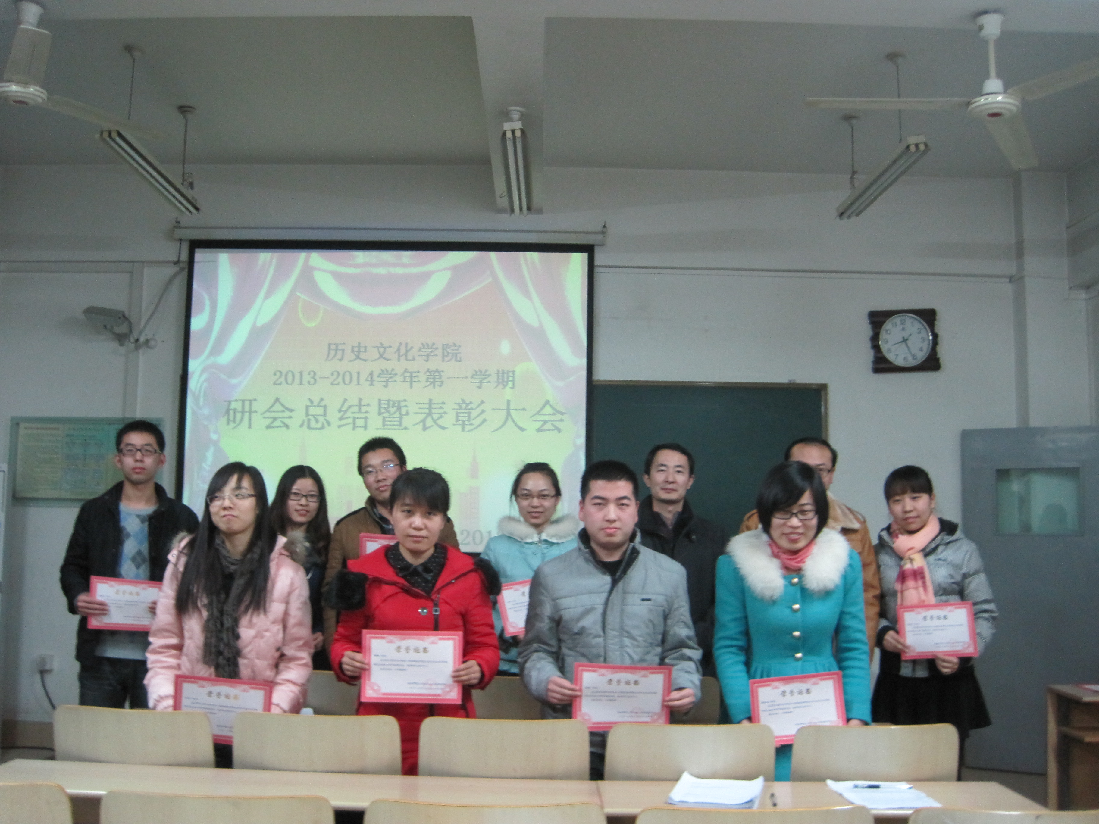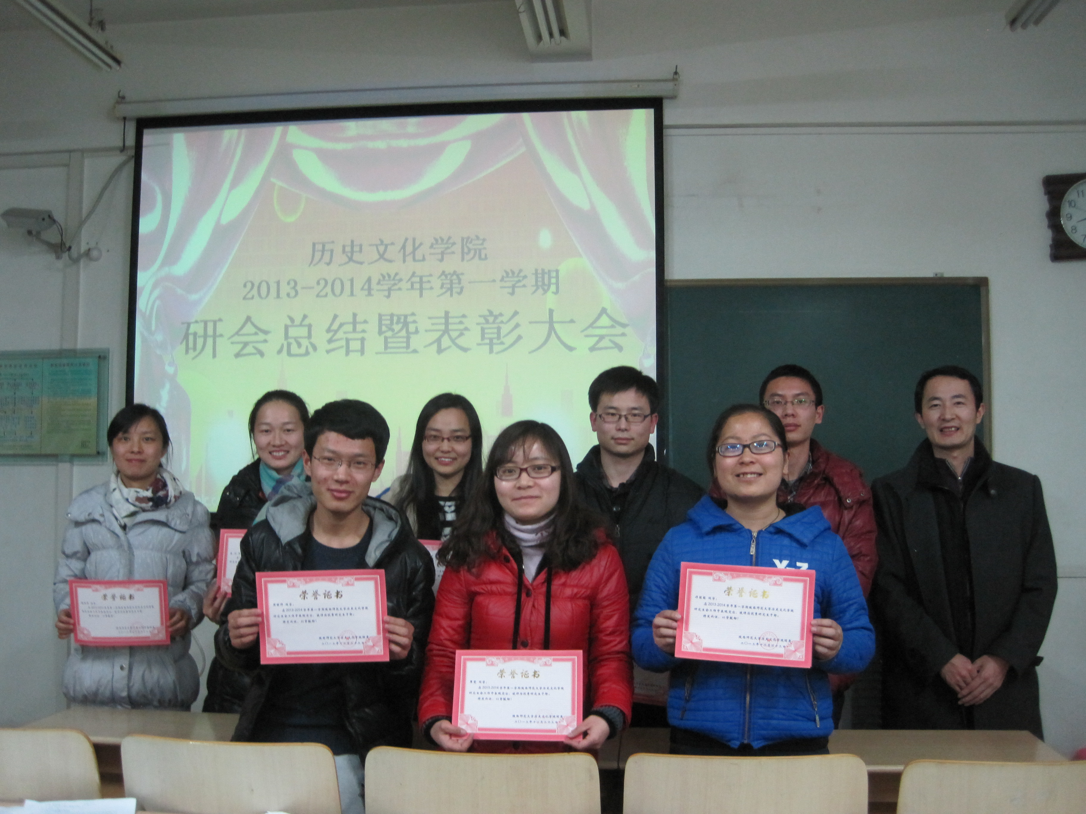 首先,研会各部部长依次向全体与会人员就本学期工作情况做述职报告,肯定成绩、总结得失、展望未来。接着,研会主席朱闪代表主席团对第八届研会工作做了总结,回顾了本学期研究生会在“在服务师生中提升自我”宗旨下开展的各项工作,主要包括多层次的学术交流活动、有针对性的实践活动、有益身心的文体活动、研会自身建设,她对大家在工作中表现出来的团结协作精神表示感谢,同时也指出工作中存在的问题以及下一阶段的发展规划。再次,主持人宣读获得研会先进个人、优秀干部名单后,柴永昌老师向同学们颁发荣誉证书予以鼓励。