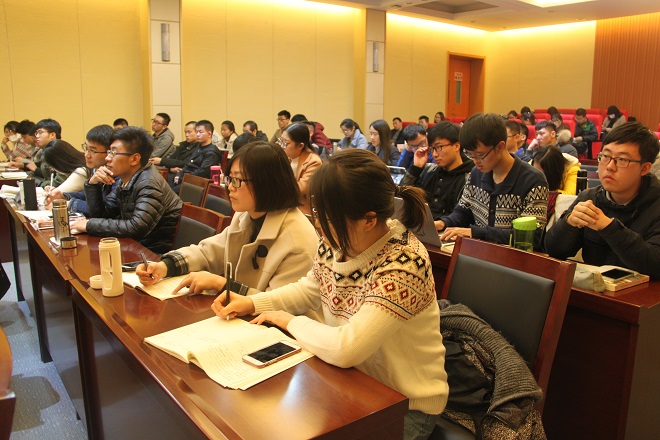 韩东育教授首先向介绍了“宗藩体系”的概念。他把这种以中国为中心形成的朝贡体系生动地比作当今的WTO。接着,韩教授阐述了藩国试图跳出朝贡体系的过程。他分析了中国、日本、朝鲜三者错综复杂的关系,用众多鲜为人知的历史案例和历史真相,如日本酝酿的“大东亚秩序”、由1879年“琉球据日事件”引发的“牡丹社事件”和“琉球《分割案》”、吞并朝鲜事件以及签订《马关条例》等案例,深入浅出地阐明了《中日友好条规》签订之后,东亚国际关系发生的大反转,如此生动的阐述有助于广大师生厘清日本拆解“宗藩体系”的隐秘逻辑。最后,他强调我们在构建命运共同体和“一带一路”经济带时,要时刻思考周边国家的外交方针,将爱国精神熔铸于心。