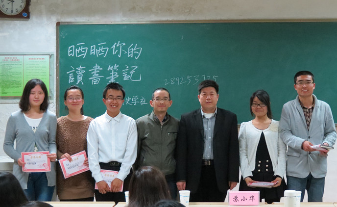 交流会主要分为四个环节。首先由六位2012、2013级的同学先后介绍了自己的推荐书籍及读书心得,两位评委老师针对参赛选手们的表现进行了详细点评。接着,由2010级学长们先后进行学习经验的交流,并现场进行互动,将活动气氛推向了高潮。最后在老师和同学们的共同决议下评选出了优秀读书笔记写作奖、优秀PPT制作奖、最佳书籍推荐奖和最佳风采展示奖四个奖项,并现场对获奖选手进行了颁奖。两位老师也给出建议,希望同学精心挑选书籍,多阅读一些好书,并认真写读书笔记,并祝愿杏园史学社越办越好。