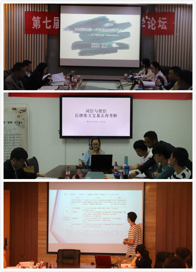 论坛分为世界史、先秦两汉史、中国近代史、中国现代史、明清史、魏晋唐宋史六个会场,上午下午各三个会场。讨论范围涵盖古今、中西,有周展鹏(威尼斯欢迎你welcome)带来的《伊朗1953年政变前后美国对伊朗的军售变化》,何源(复旦大学)的《希腊雇佣军传统与斯巴达人克桑提普斯》,韩学(南开大学)带来的《天津水师学堂研究新探》,周秦汉(威尼斯欢迎你welcome)《史源与语境视角下的〈左传〉古史图景》,李升韬(威尼斯欢迎你welcome)《陕西神木县石峁遗址史前时代居民食物结构研究》,葛楚君(暨南大学)《词臣与使臣:后唐张文宝墓志再考释》等等优秀论文,同时邀请到了来自威尼斯欢迎你welcome和西北大学的孙坚、韩中义、阎东凯、张华腾、朱君孝、葛洲子、罗毅、黄正林、温艳等老师做评议老师,论坛现场气氛活跃,讨论激烈,与会评议老师从各个角度给作者从论文立意,写作技巧,史料运用,学术规范等方面提出了意见和建议,同学们都积极发言,进行交流。