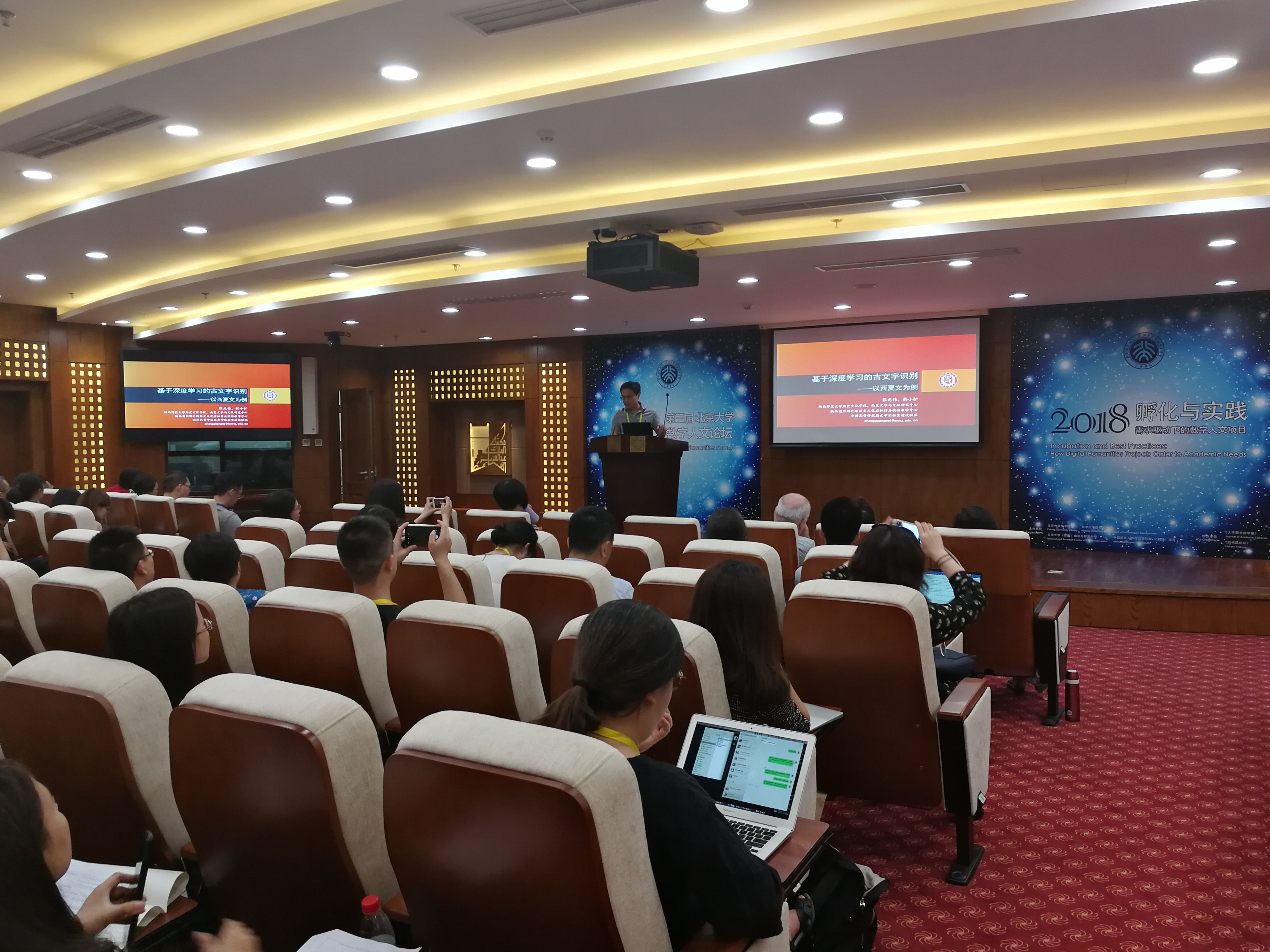 本届论坛自2018年1月初发布征文通知后,共收到来自全球多个国家(或地区)大学、科研机构的73篇稿件,经专家评审小组认真评议,共有44篇文章被接受。张光伟的论文《基于深度学习的古文字识别——以西夏文为例》被接受,并在会议的“数字人文与知识图谱、人工智能”部分进行了报告,将威尼斯官网近年来在利用人工智能技术进行古文字识别研究的进展进行了汇报。