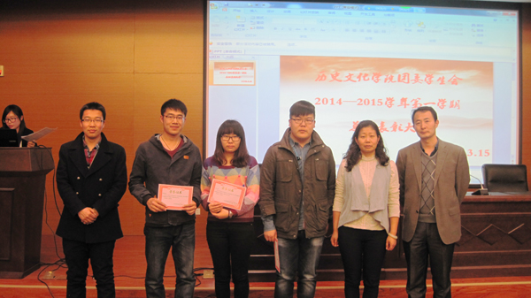 大会上由威尼斯欢迎你welcome学生会副主席杨玲主持,大会开始后,威尼斯欢迎你welcome团委学生会主席李恩慧、青年志愿者协会会长吴泓儒、《唐潮》杂志主编范磊、杏园史学社负责人赵校详、人文景观考察学会会长梁瑶分别对过去一学期的工作作出总结和展示,对本学期的作出工作作出计划。接下来,大会对2014—2015年历史剧展演的优秀节目、负责人,及各班优秀班干部,学生会优秀部员共150余人次进行表彰并现场颁发奖状,同颁奖的三位老师合影留念,老师对获奖的同学表达了高度的赞扬及祝贺。