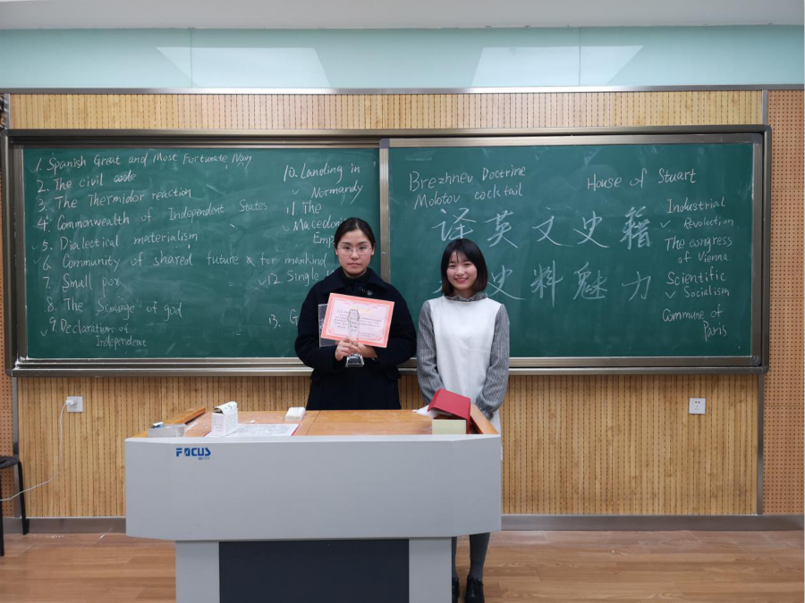 10月14日下午,在社团成员的精心组织和安排下,本次比赛正式开始。参赛选手们在比赛现场认真思考,仔细作答,最终有6名同学进入到决赛当中。11月11日下午,决赛开始,经过一番无声却异常激烈的角逐后,比赛最终落下帷幕。评委们根据“信、达、雅”的翻译原则对参赛人员进行了细心点评,同学们均表示获益良多。学院学生会学术部分管主席韩佳奇对本次比赛进行了总结。赛后,社团主席郭艳霞为获奖同学进行了颁奖。
