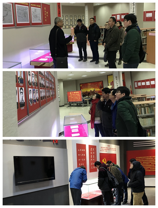 12月2日下午党员同志们随即又前往党员教育基地、红色教育基地——商洛红色文化资料馆。该馆位于商洛学院图书馆内,拥有丰富的革命历史、中共党史人物传记、社会主义建设方面的藏书、图片展览、实物资料。在红二十五军转战各地的地图前,讲解人向党员同志们详细介绍几支红军队伍在陕西境内特别是在商洛地区的革命奋斗史。该馆正是杨增强馆长以一个历史学人的使命感一手兴办。
