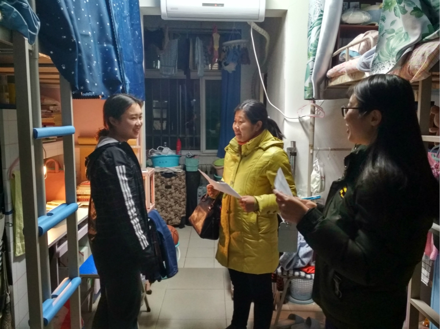 晚上,各年级辅导员开始走访学生宿舍。2015级辅导员马瑶和袁世强亲切地询问了学生的就业和考研情况;2016级辅导员王欢询问了学生期末考试准备情况,勉励学生认真备考;2017级辅导员洪海安和吴泓儒在学生宿舍区辅导员工作室和学生进行了谈心谈话,并在宿舍和同学们进行了学习和生活上的沟通。2018级辅导员鲁旭萌为帮助学生提高复习效率,组织学生在期末考试复习期间集体上自习,并在教室和学生进行了亲切互动。