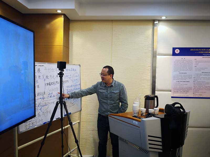 2019年4月14日,教育部高等学校国家级实验教学示范中心联席会首席技术专家、教育部高等学校仪器设备和优质资源共享系统项目管理中心技术委员会专家、北京大学郝永胜教授到丝绸之路历史文化虚拟仿真实验教学中心指导工作,我校实验室建设与管理处处长郭建中教授,威尼斯欢迎你welcome院长何志龙教授,副院长曹伟等接待了郝永胜教授一行。郭建中处长向郝永胜教授介绍了丝绸之路历史文化虚拟仿真实验教学中心的建设情况,何志龙院长介绍了学院为实验教学中心的持续发展所作的规划。实验教学中心副主任张光伟向郝教授汇报了近期本中心虚拟仿真项目建设的具体情况。历史文化虚拟仿真社团的负责同学也参加了此次活动,并向郝教授展示了社团的工作。
