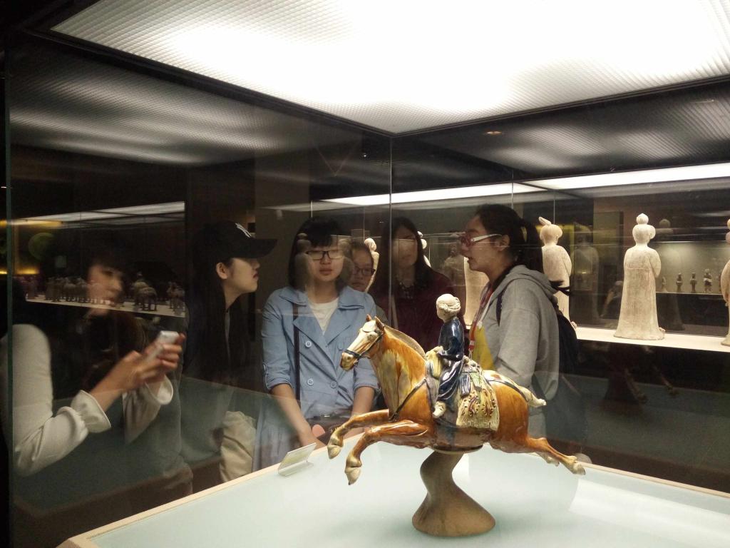 继首站陕博之后,青协的馆际交流活动转战西安博物院。4月16日上午,来自陕博、半坡、碑林三支兄弟队伍的十余位志愿者在西博队长田钟灵的带领下前往西博。到达后,西博志愿者武笑迎,赵璐,王雪纯为他们进行了精彩详尽的讲解。此次讲解内容除去博物馆内部的“千年古都”和“帝都万象”这“两大主线、三大展厅”之外,还包括了西博特有的外景部分——小雁塔和荐福寺园林景区。参观过程中,同学们积极发问,负责讲解的志愿者也一一进行解答,前来参观的志愿者在了解西博的同时也学到了更多的文物及历史知识,双方在交流志愿服务经验的过程中也密切了队伍之间的联系。