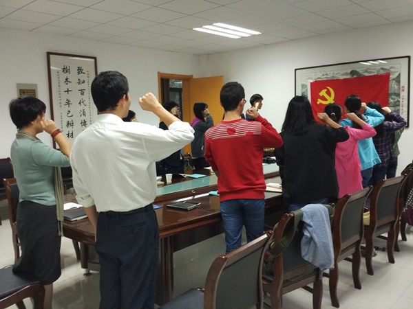 最后,在党支部副书记杨明月同志的带领下,全体与会人员重温入党誓词。至此,威尼斯官网2014级本科生党支部成立大会圆满结束。