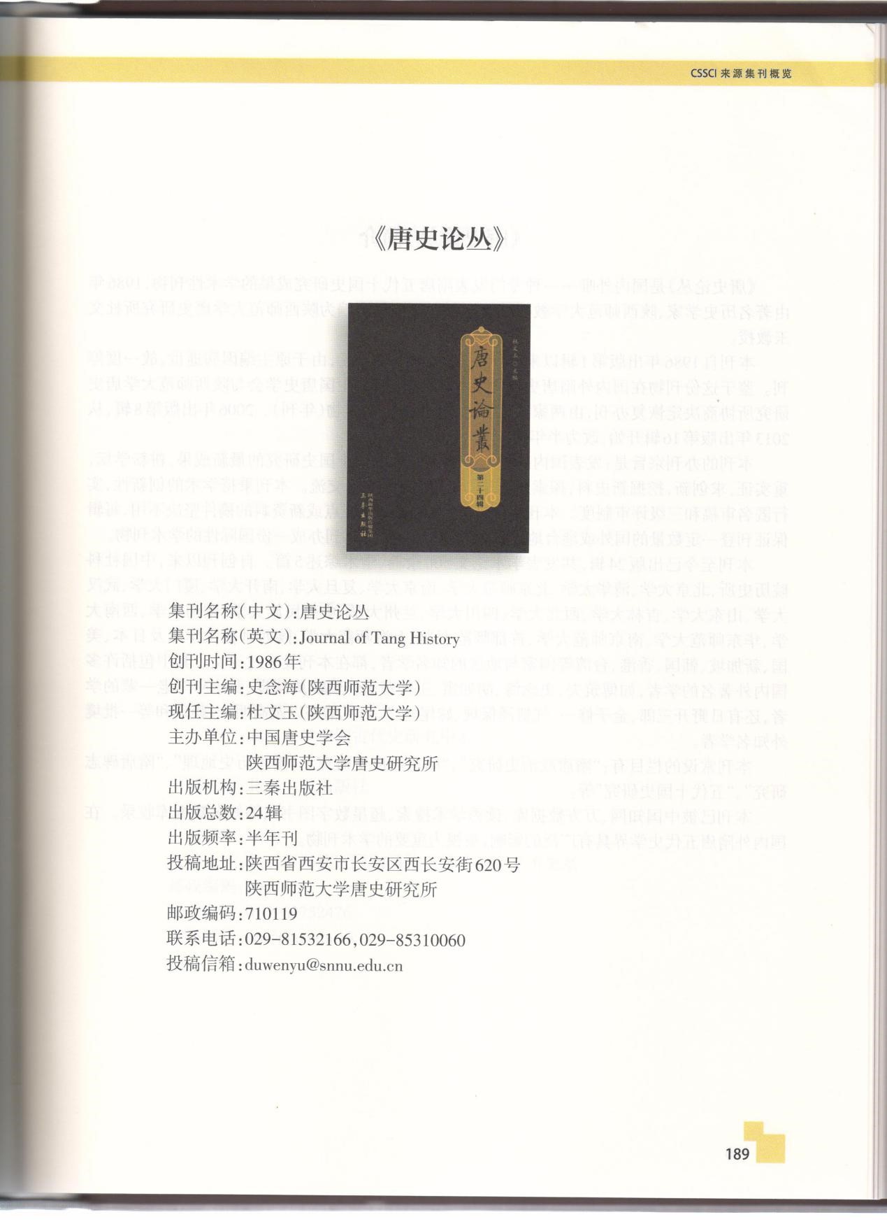 《唐史论丛》是由威尼斯欢迎你welcome唐史研究所(隶属于威尼斯欢迎你welcome)与中国唐史学会联合主办的学术集刊,连续被南京大学中国社会科学研究评价中心评定为CSSCI来源集刊(2012-2013)(2014-2016)(2017-2018)。目前已被选入南京大学中国社会科学研究评价中心编辑出版的《CSSCI来源集刊概览》一书(2018年4月)。
