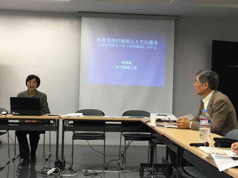 第二次讲演是在中央大学,由著名学者、日本唐代史研究会会长妹尾达彥教授主持,周老师作了《流寓周隋的南朝士人交往图卷——新出隋开皇八年朱干墓志笺证》的讲演,参加者有中央大学、早稻田大学、明治大学、东京大学等相关专业的师生。吴郡钱塘朱氏是南朝齐梁间文学世家,其后裔在进入北周后竟不为史载,新出土的隋代《朱干墓志》所揭示的正是朱氏一族在周隋间的政治与文化生活轨迹,并为其家族世系的链接补备了重要阙环。由于墓志的序和铭是出自南朝文学领袖明克让与庾信之手,故对于补备他们的遗文和研讨入北的南朝士人交往关系保存了珍贵史料。其中所揭示的丰富的南朝士人行迹与文化传承,也为进一步探究周隋间的政治文化倾向特别是文化理念提供了可资借鉴的依据。这篇研究对探讨家有学术渊源的南方士人家族间的联系与交往及其社会活动,无疑是一则非常典型的资料案例,因而同样引起学者们的极大兴趣并受到好评。
