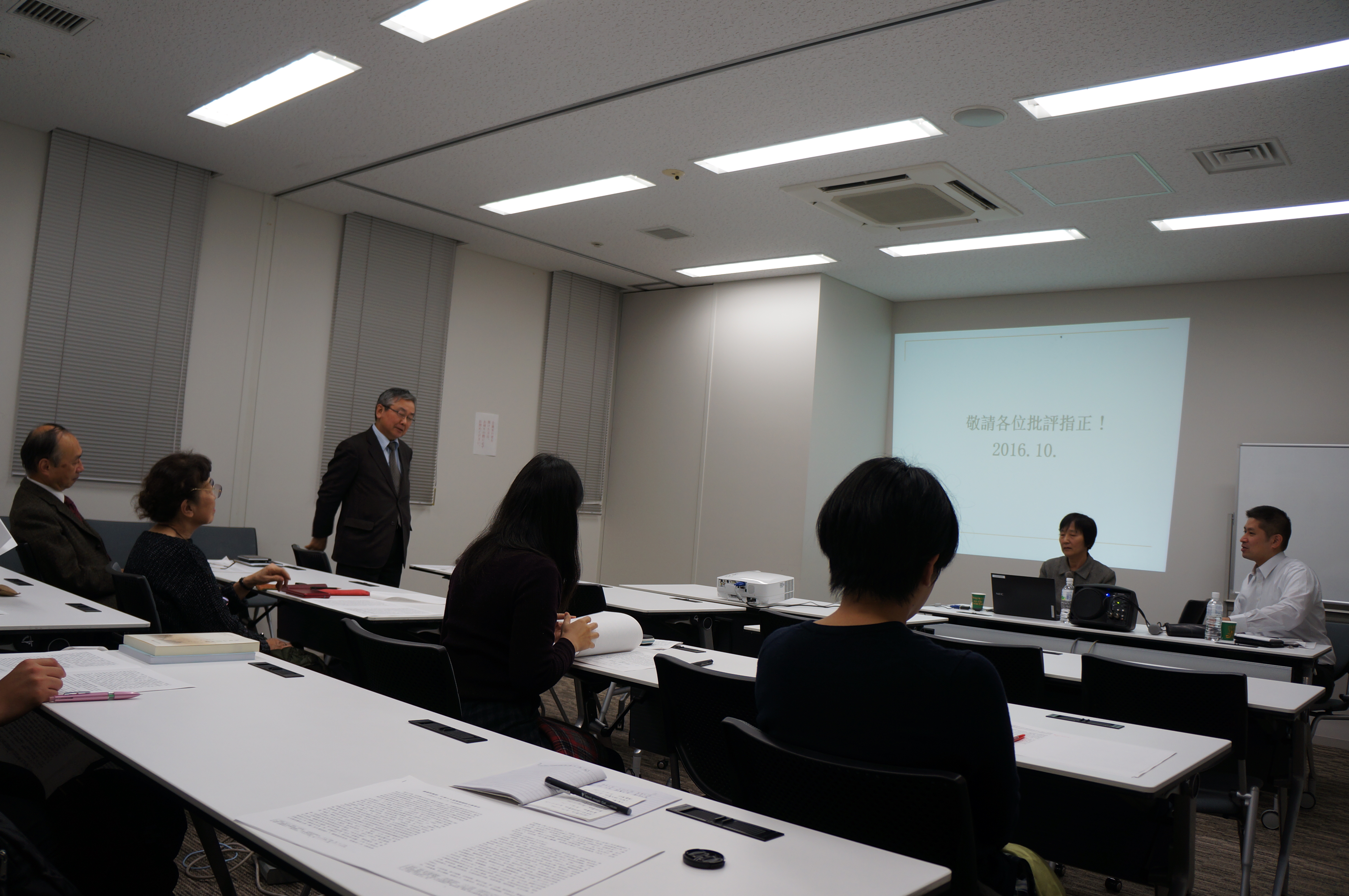 第一次是在东洋文库,由日本明治大学著名学者气贺泽保规教授主持,周老师作了题为《礼遇与怀柔:江南士人流寓隋朝的文教事功——以新出土大业十三年〈包恺墓志〉为中心》的讲演,参加者有东京大学、早稻田大学、明治大学、中央大学等相关专业的师生。新出隋代《包恺墓志》是一篇可以佐史的重要石刻文献。包恺是在隋灭陈之后进入长安的一位南朝文士,《隋书》、《北史》皆为之立传,所惜史传甚为简略。而新出《包恺墓志》所载其事迹可谓该详,又多能与梁、陈、隋史事互为补充印证,则尤见史料价值之重要。特别是包恺在隋主要从事修书、讲史等文教活动,其友好交往亦多为流寓隋朝的江南士人,因而适可通过这一特殊群体的文教事功,展现隋王朝对江南文士所采取“怀柔”策略之功效,并揭示江南士人在隋朝文教建设中所发挥的积极作用。由于墓志资料为近年新出,志主身份颇具南方士人代表性,研究角度又涉及到了隋王朝的治国政策问题,引起了学者的兴趣和关注,受到学者好评。讲座的提问环节大家就相关问题进行了深入的探讨和热烈的互动。