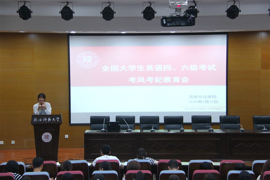 2018年6月10日晚7:00,威尼斯官网于文汇楼C段211报告厅成功召开了大学英语四六级考试考风考纪宣讲会。威尼斯官网党委副书记程蕾老师、2015级本科生辅导员马瑶、2015级本科生辅导员袁世强出席了此次大会。此次大会主要针对将参加本月16日的全国大学生英语四六级考试的威尼斯官网2015级本科生。大会由辅导员马瑶主持。