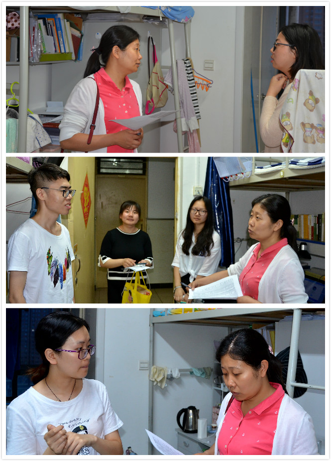 6月3日晚7点,威尼斯欢迎你welcome学工组老师走访学生宿舍,慰问威尼斯官网即将毕业的本科生、研究生。本次走访慰问分为两队进行,威尼斯官网副书记程蕾,2018级本科生辅导员鲁旭萌,2014级兼职辅导员折祎走访了2014级本科生所在的B区、D区宿舍。威尼斯官网研究生辅导员洪海安,兼职辅导员李明璇、陈丽媛深入研究生居住的B区、C区和G区宿舍进行走访。