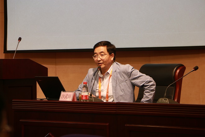 沙武田教授在大会主场上半场作主旨发言,题目:《敦煌壁画中的罽宾人形象考》,利用敦煌石窟图像中的佛顶尊胜陀罗尼经变、西安出土北周李诞墓石门、陕北靖边县翟曹明墓石门等材料对罽宾人形象做了探析,结合典籍文献的记载,对北朝隋唐时期出现在中古艺术品中的罽宾人形象作了详细的考证,为丝路国家往来提供新的观察视角,也为理解罽宾与汉地文化交流提供形象的资料,也为我们今天从形象史学的角度理解丝路文化交流提供形象的解读。