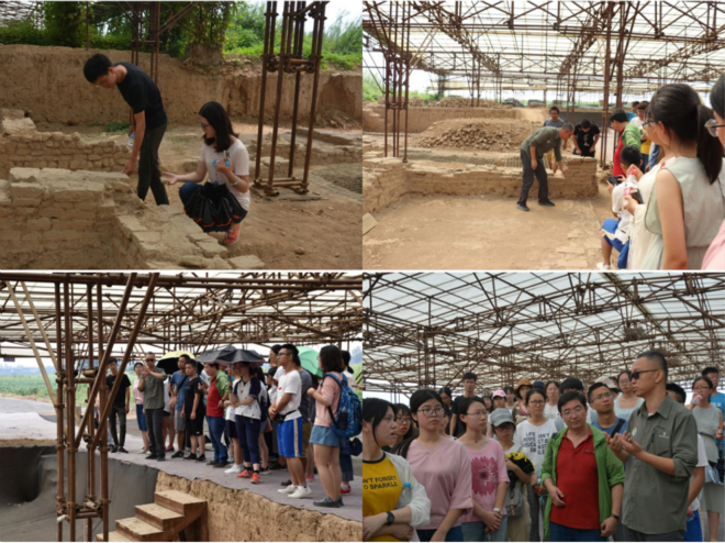 同学们在老师的带领下前往汉魏洛阳故城遗址考古工地,走过太极殿与阊阖门,站在洛阳王城的中轴线上感受岁月的变迁与历史的厚重。同时,在高温野外的参观考察下,同学们切身体会到考古工作的艰辛漫长,也深深折服于考古工作者的坚韧品质与赤诚之心。
