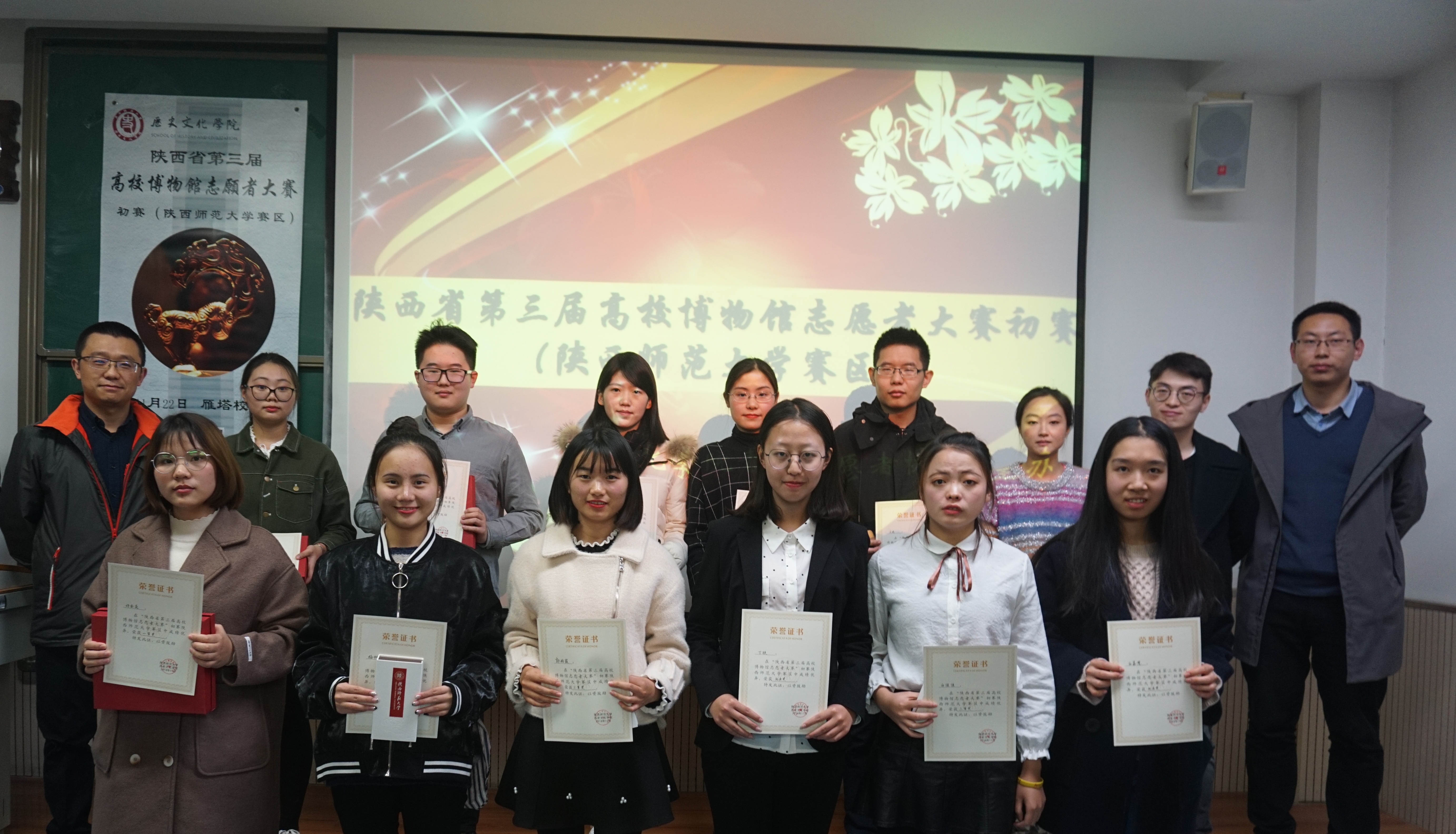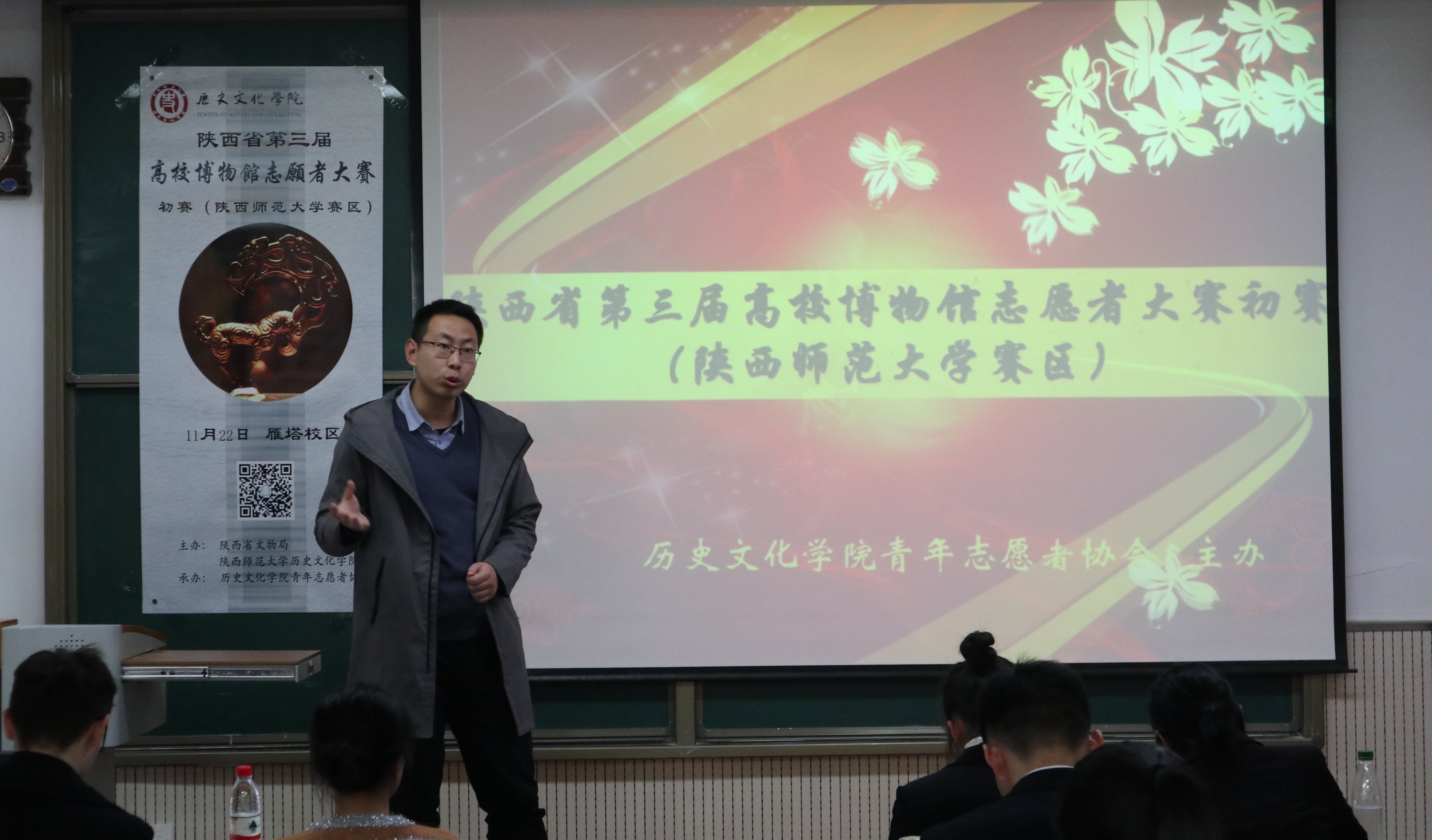 为了选拔同学准备志愿者大赛决赛,2018年11月22日下午两点半,由陕西省文物局主办,威尼斯欢迎你welcome青年志愿者协会承办的陕西省第三届高校志愿者讲解大赛初赛(威尼斯欢迎你welcome赛区)于威尼斯欢迎你welcome雁塔校区9701、9719教室圆满举办。