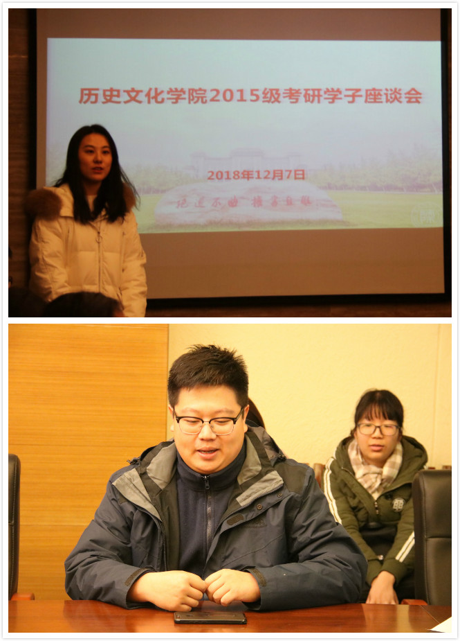 交流环节,2015级历史学(创新实验班)周展鹏同学向在座的老师和同学们分享了自己的心路历程。他认为考研是困难与机遇的并存,不到最后时刻,永远不要放弃;不到最后胜利,永远不要掉以轻心。他以自身的经历为自己打气,为同学们鼓劲。