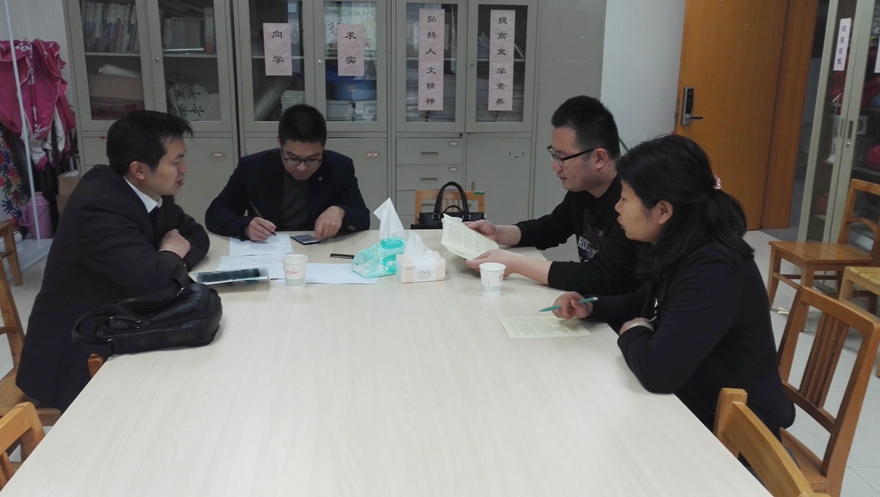 3月30日上午,河南省社会科学院人事处副处长王洪源一行来威尼斯官网进行博士招聘,学院团委书记、研究生辅导员洪海安接待王老师,并向他们详细介绍学院博士毕业生具体情况,并及时联系博士研究生现场洽谈。